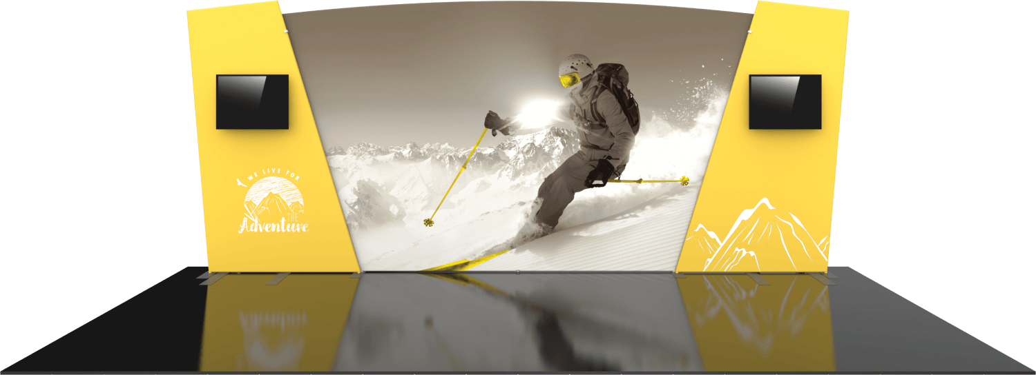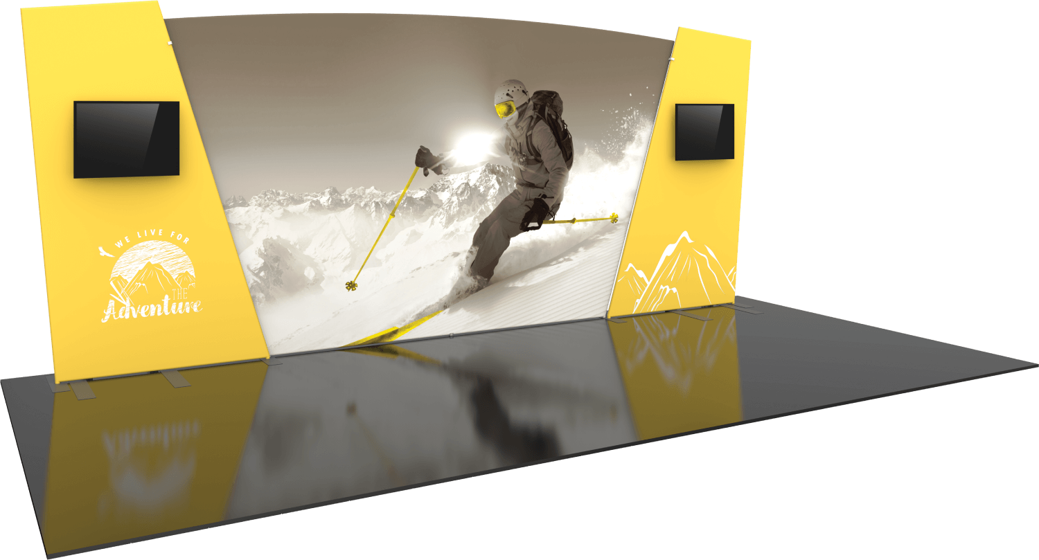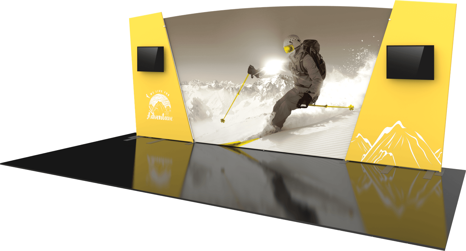 Formulate® Designer Series 20ft displays have unique stylistic features and shapes, are portable and easy to assemble. The aluminum tube frame features snap-buttons and/ or spigot connection and zipper pillowcase fabric graphics. All displays come in portable, wheeled transit cases. Simply pull the pillowcase fabric graphic(s) over the frame and zip.