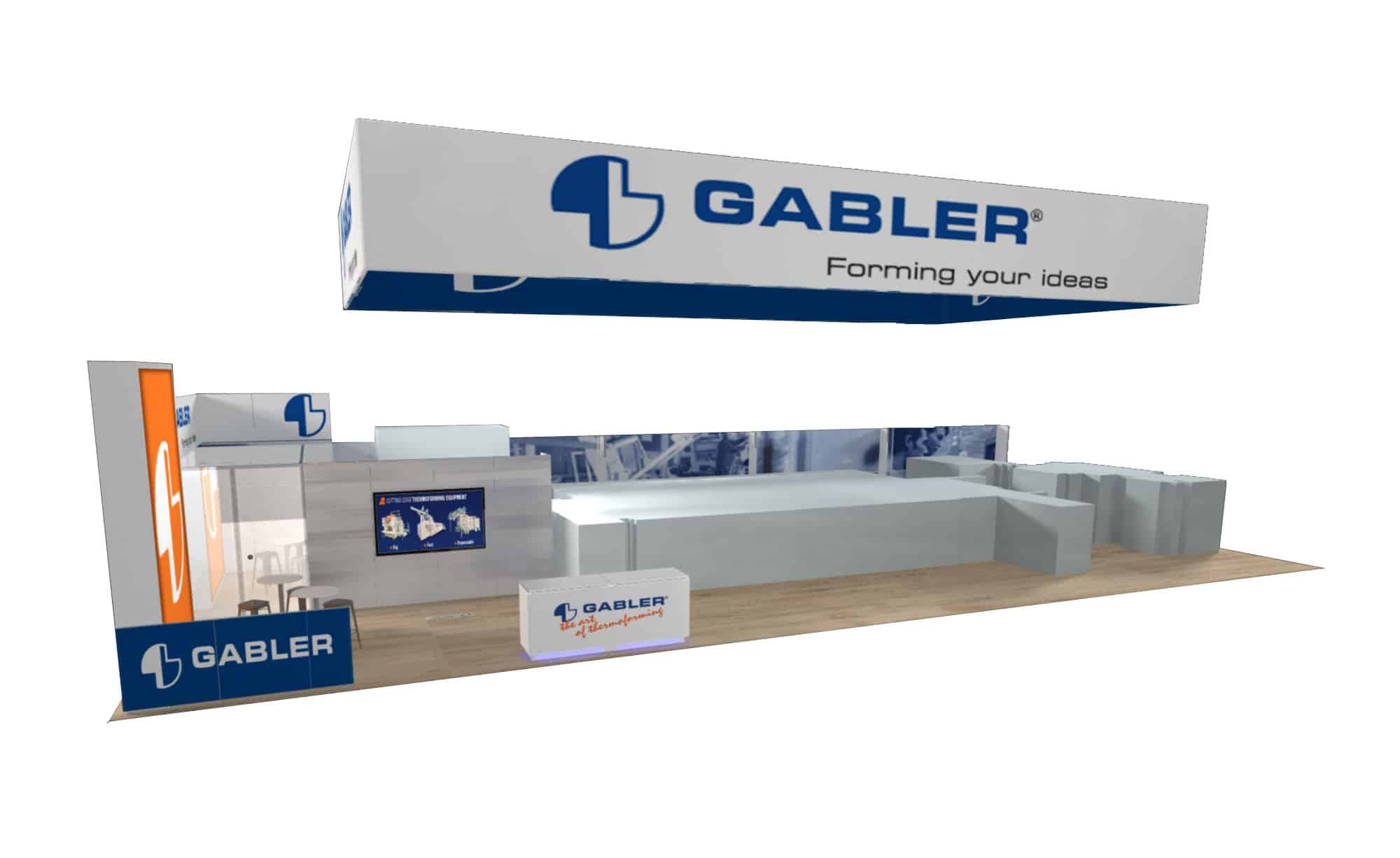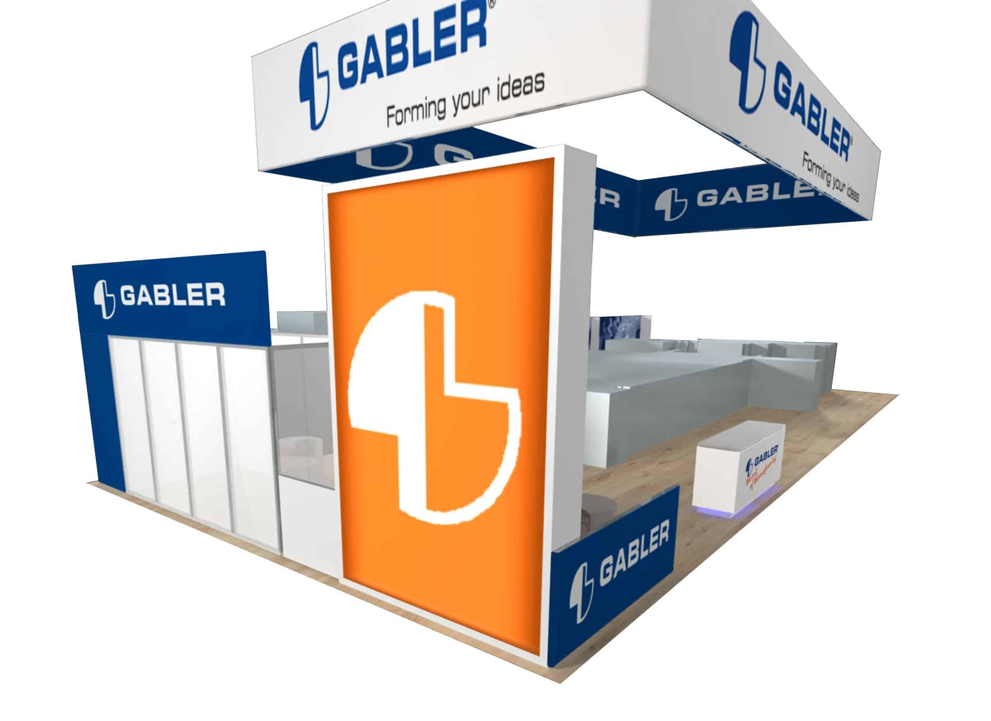 Spacious, sizable, and modern — the Gabler 30×70 booth is a great choice for your next trade show. Customize the graphical aspects of this exhibit to meet the needs of your company, and to display your brand’s image to potential clients. Stand out by choosing this sprawling display, available as a rental or purchase.